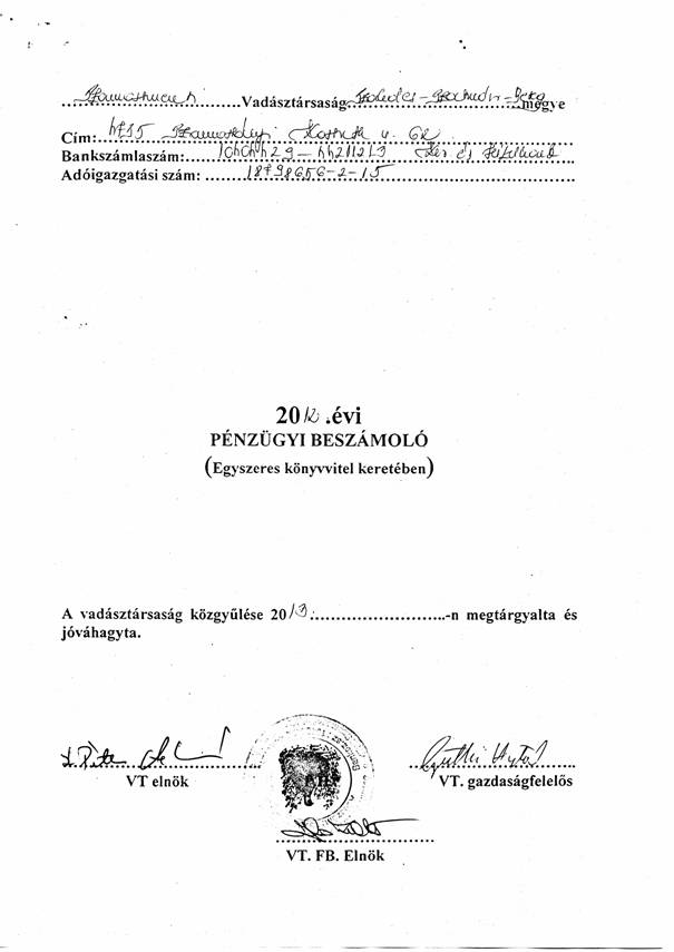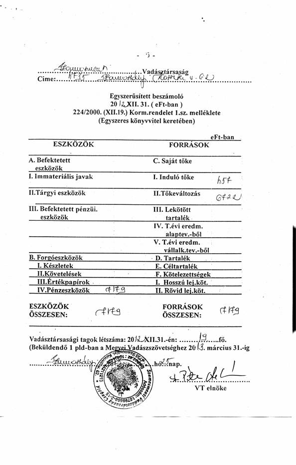 Pénzügyi beszámoló 2012 év: